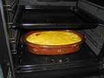 Levar o recipiente utilizado ao forno, que já deve estar quente. Deixar o tempo suficiente para que o tigelada fique pronta. Se se notar que está a queimar muito por cima, deve-se tapar com uma folha de alumínio.